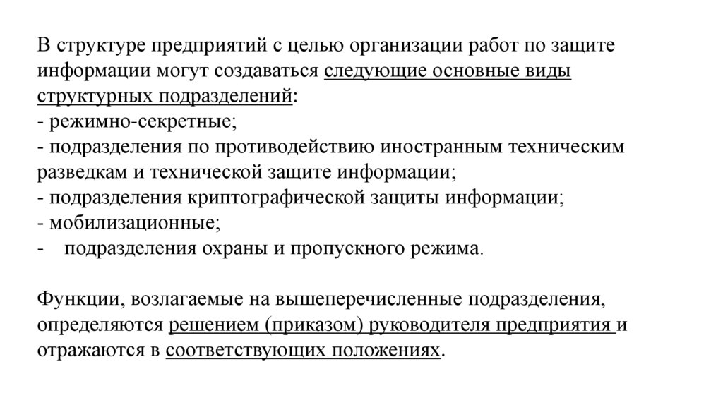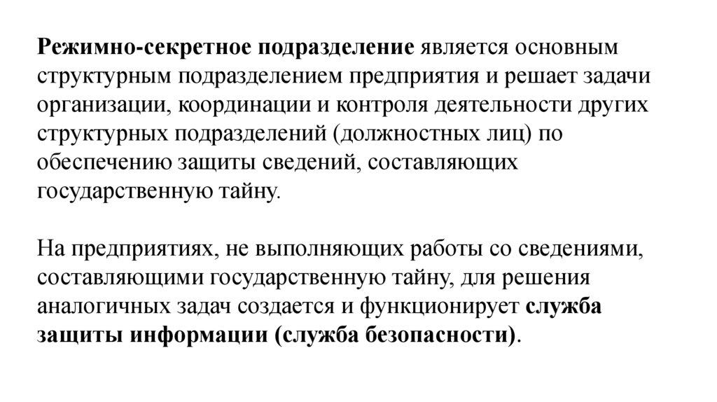 Служба безопасности (режимно-секретное подразделение) предприятия