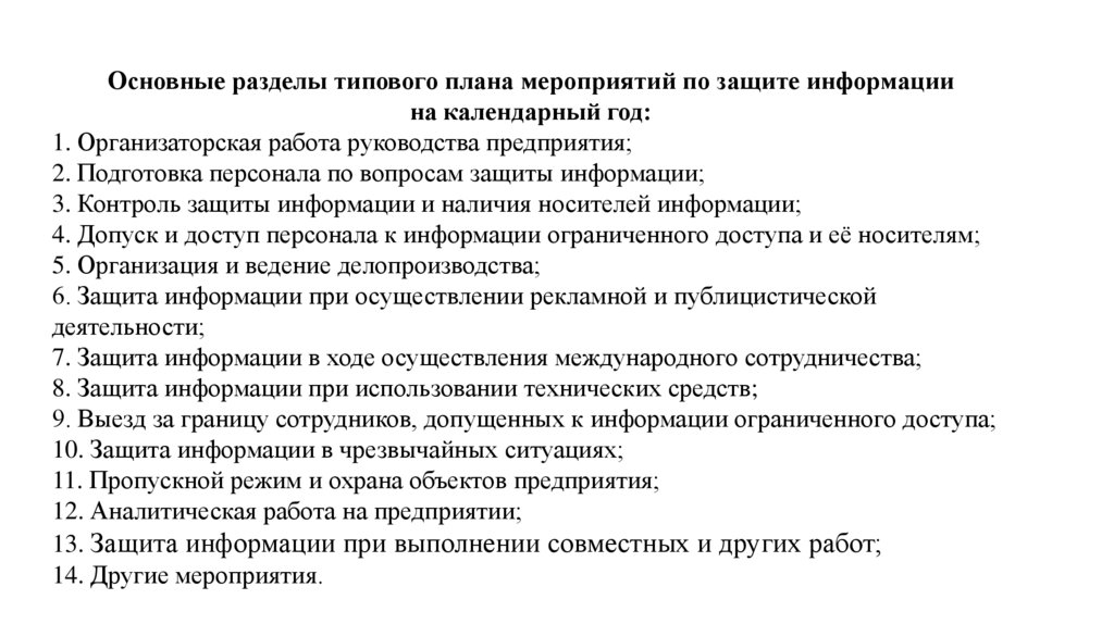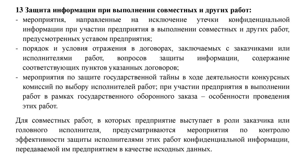 13 Защита информации при выполнении совместных и других работ:- мероприятия, направленные на исключение утечки конфиденциальной