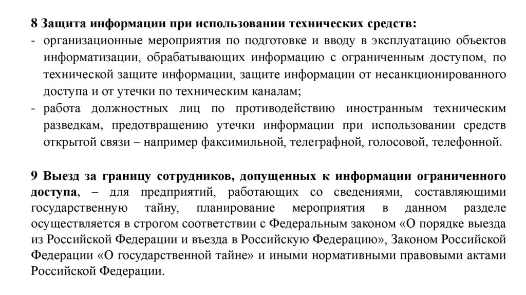 9 Выезд за границу сотрудников, допущенных к информации ограниченного