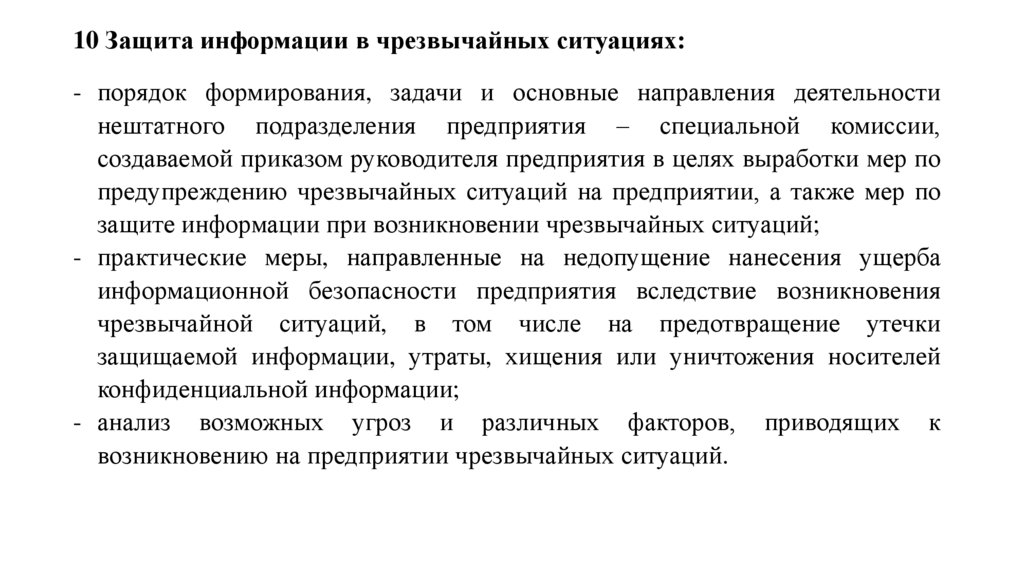 10 Защита информации в чрезвычайных ситуациях:- порядок формирования, задачи и основные направления деятельности