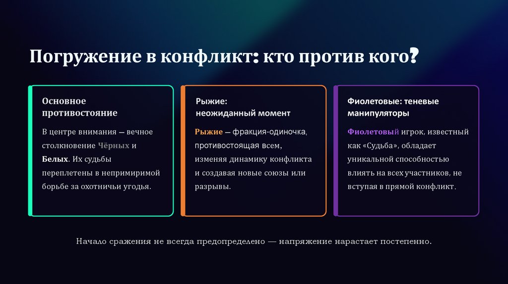 Начало сражения не всегда предопределено — напряжение нарастает постепенно.