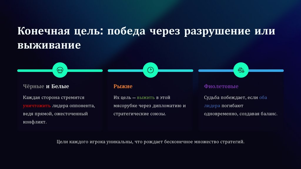 • Вынуждены заключать союзы, чтобы остаться в игре.