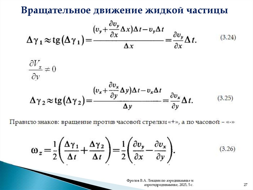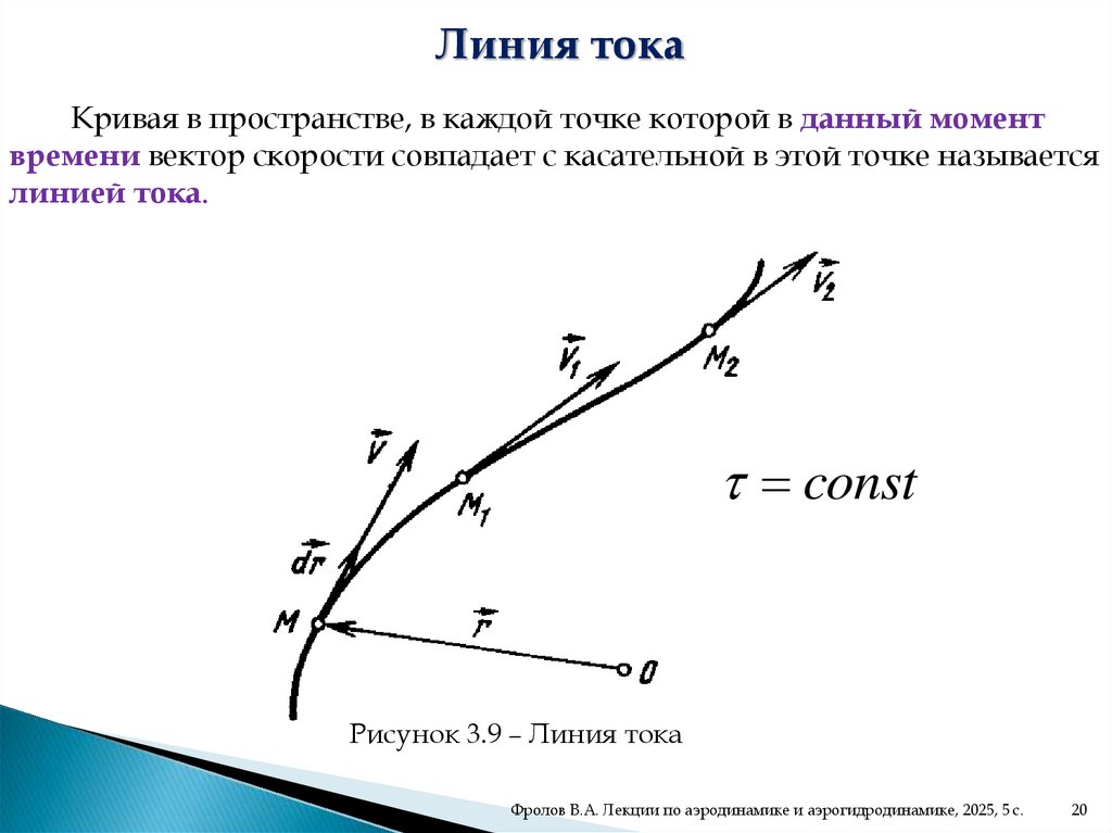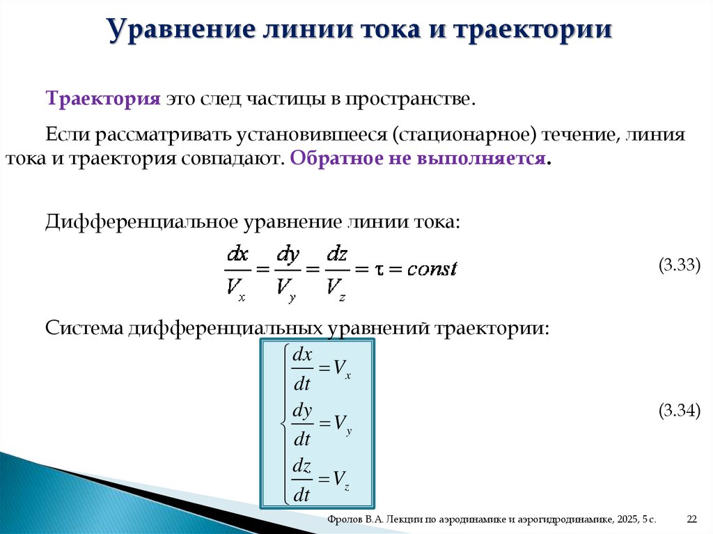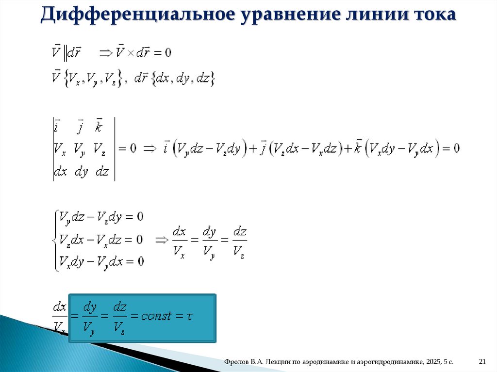 Дифференциальное уравнение линии токаФролов В.А. Лекции по аэродинамике и аэрогидродинамике, 2025, 5 c.