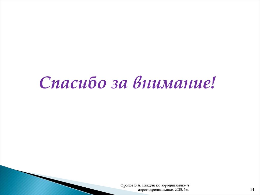 Спасибо за внимание!Фролов В.А. Лекции по аэродинамике и аэрогидродинамике, 2025, 5 c.