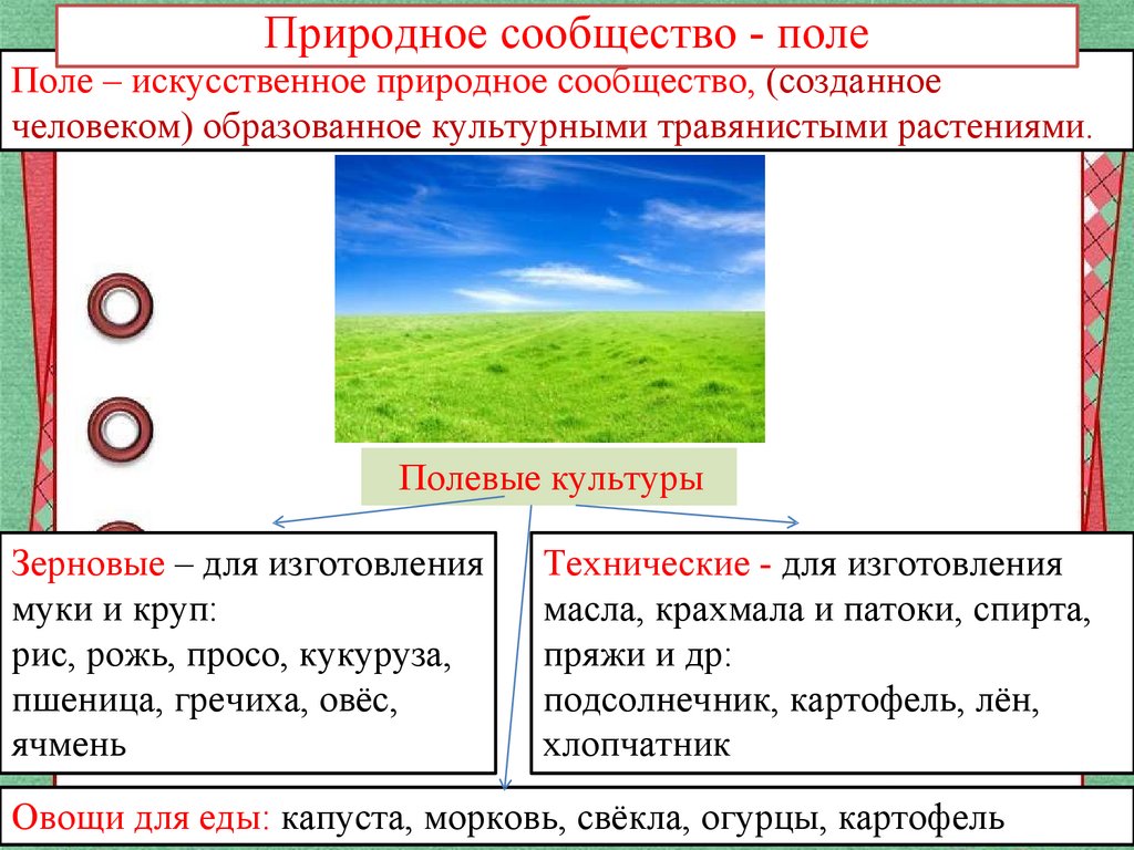 Природное сообщество - полеПоле – искусственное природное сообщество, (созданное