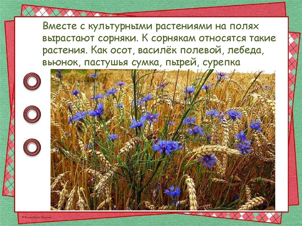 Вместе с культурными растениями на поляхвырастают сорняки. К сорнякам относятся такие
