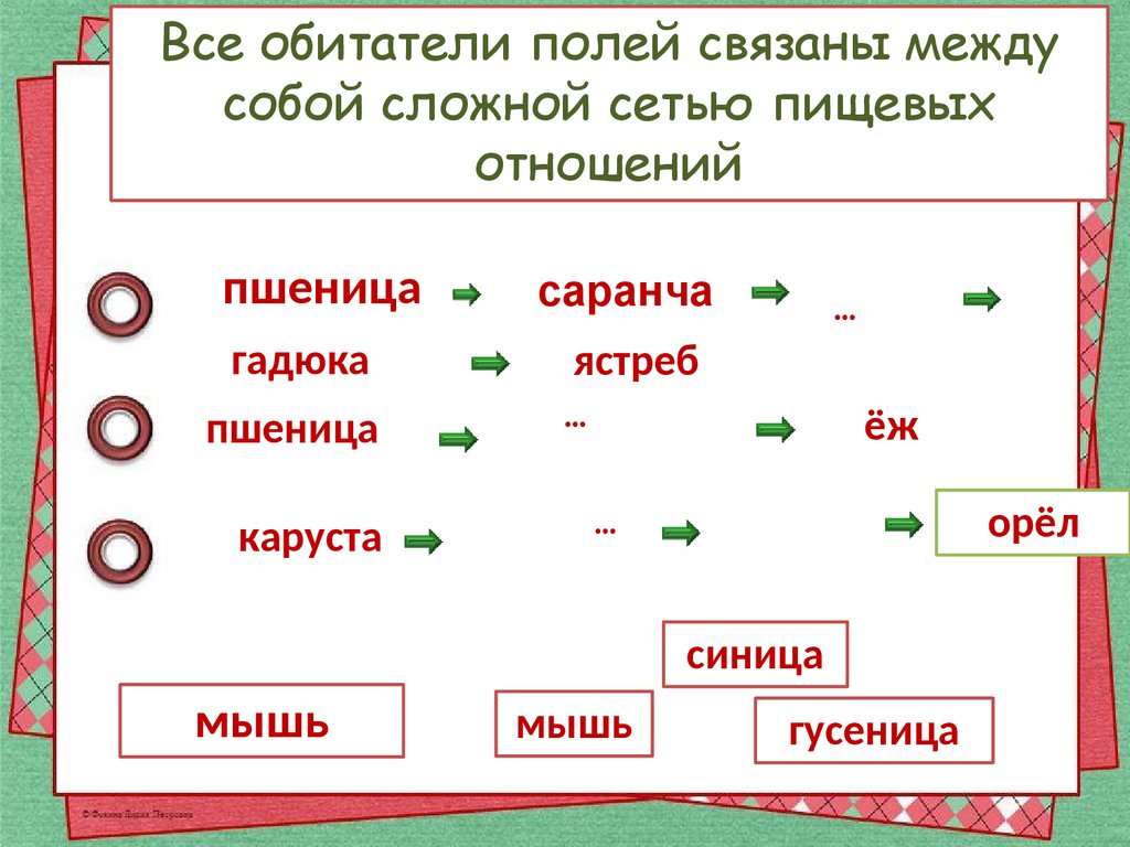 Все обитатели полей связаны междусобой сложной сетью пищевых