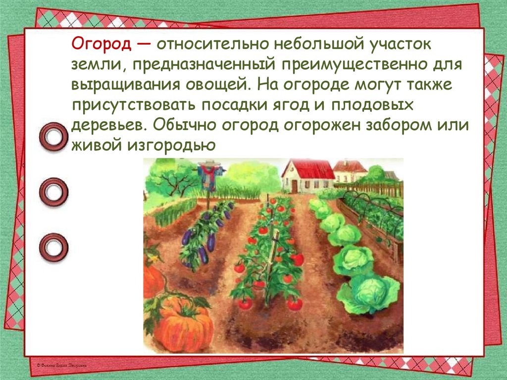 Огород — относительно небольшой участокземли, предназначенный преимущественно для