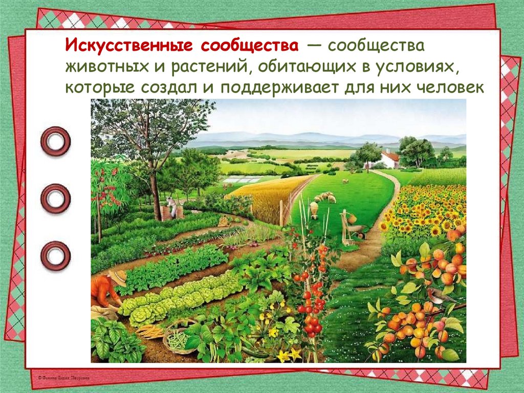Искусственные природные сообщества, созданные человеком-пруд, поле, парк, огород