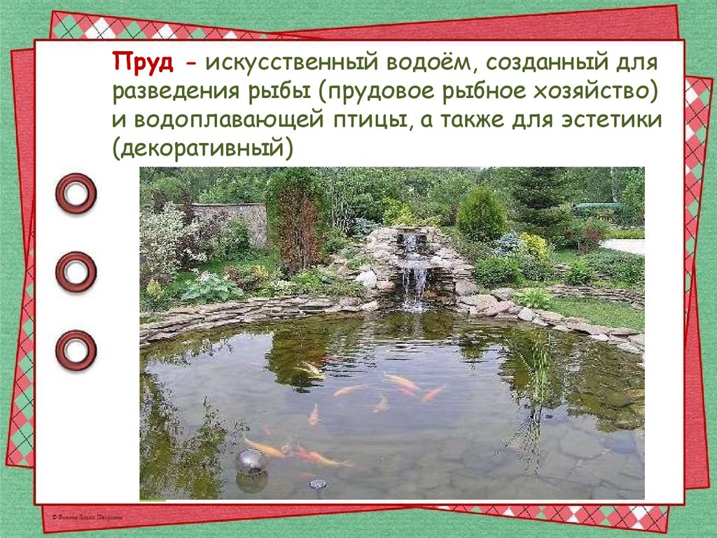 Пруд - искусственный водоём, созданный дляразведения рыбы (прудовое рыбное хозяйство)
