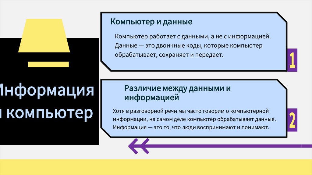 информации, на самом деле компьютер обрабатывает данные.
