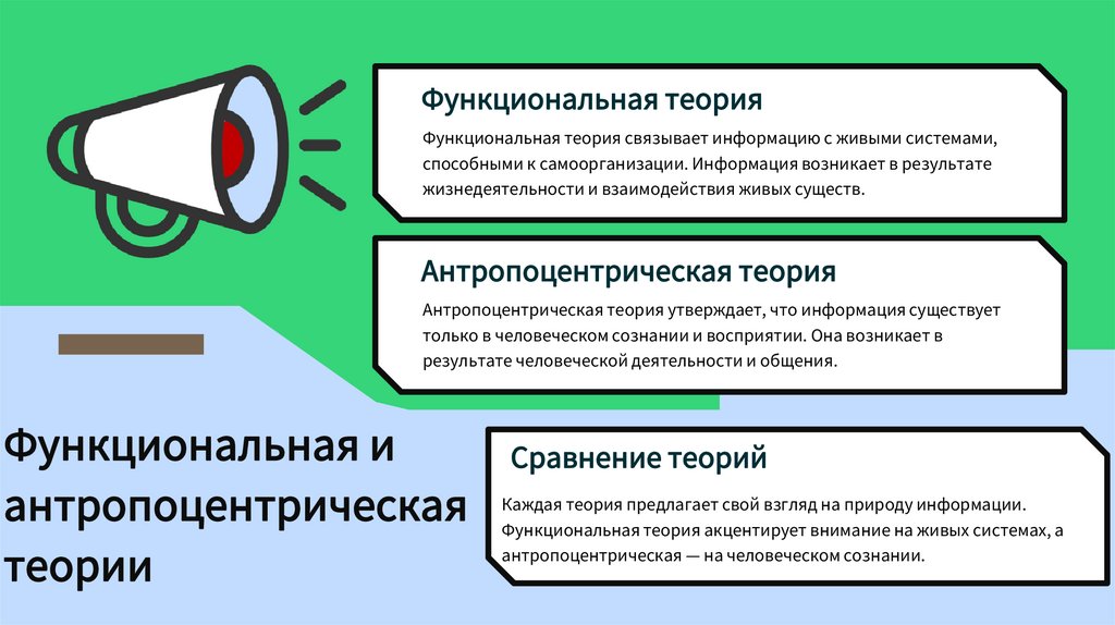 Функциональная теорияФункциональная теория связывает информацию с живыми системами,