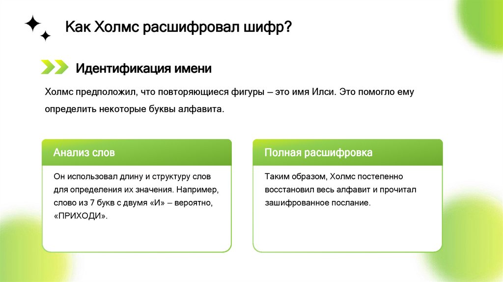 Как Холмс расшифровал шифр?Идентификация имени