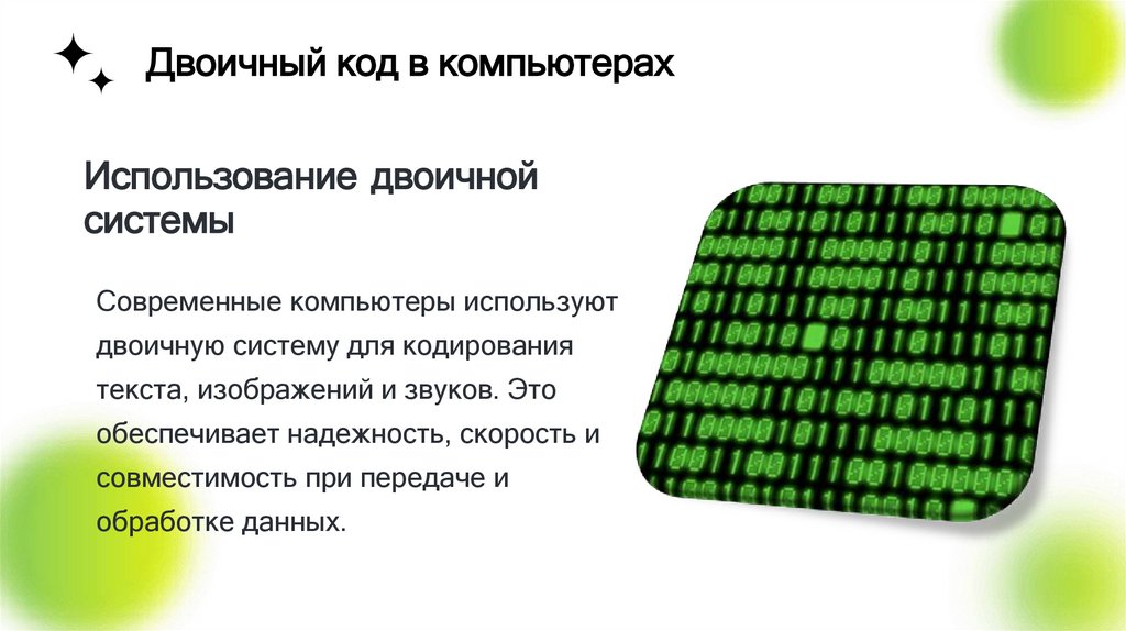 Двоичный код в компьютерахИспользование двоичной