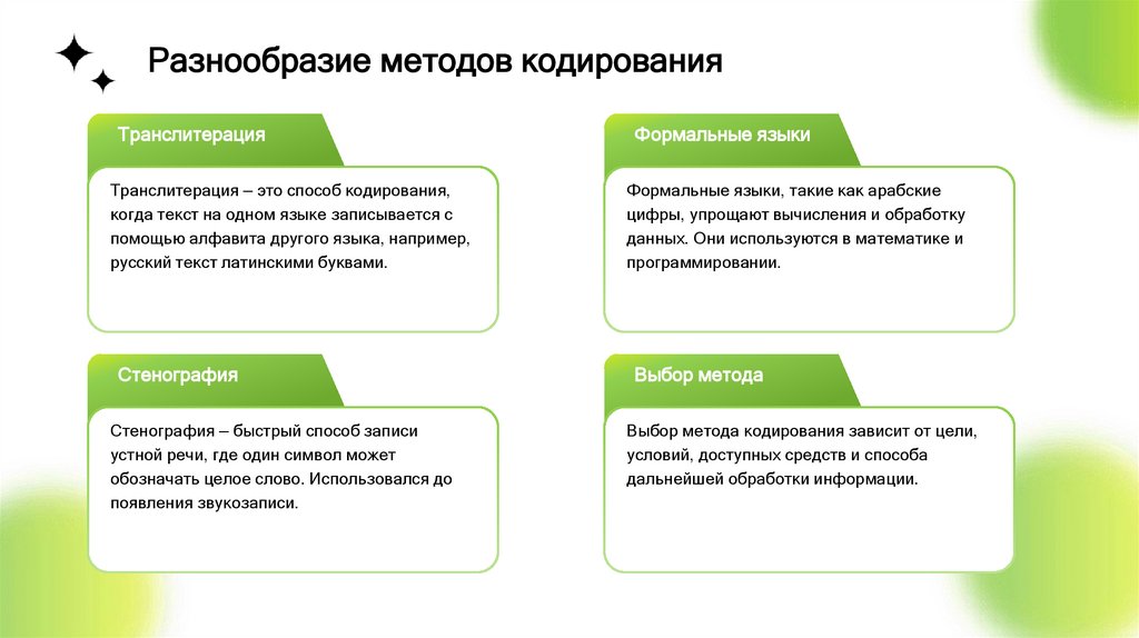 Разнообразие методов кодированияТранслитерация