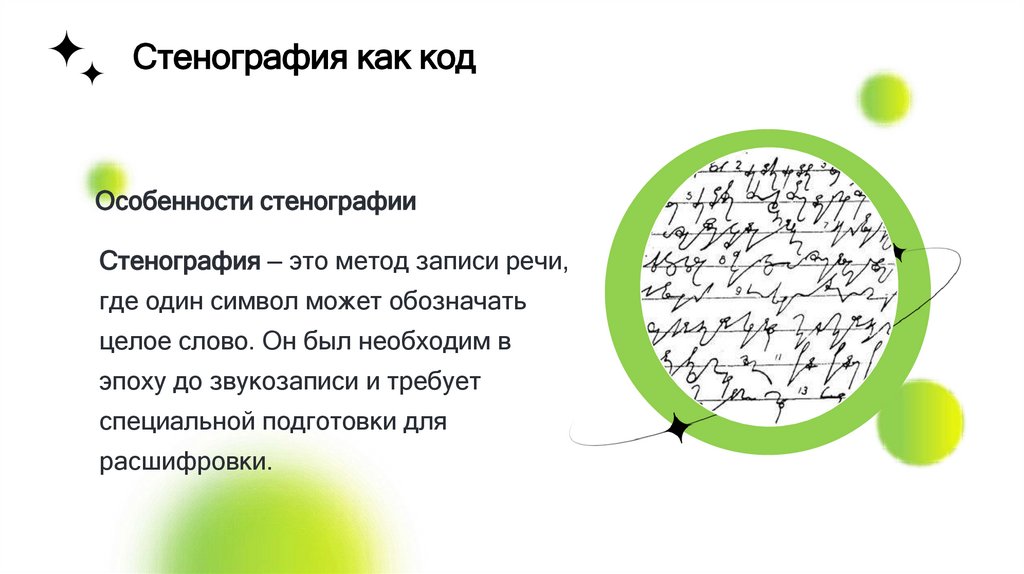 Стенография как кодОсобенности стенографии