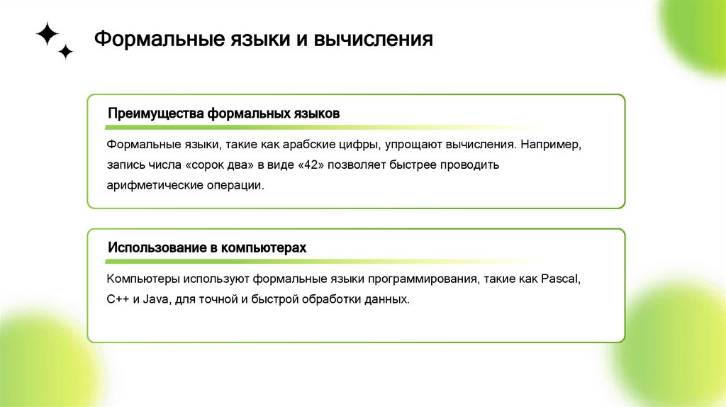 Формальные языки и вычисленияПреимущества формальных языков