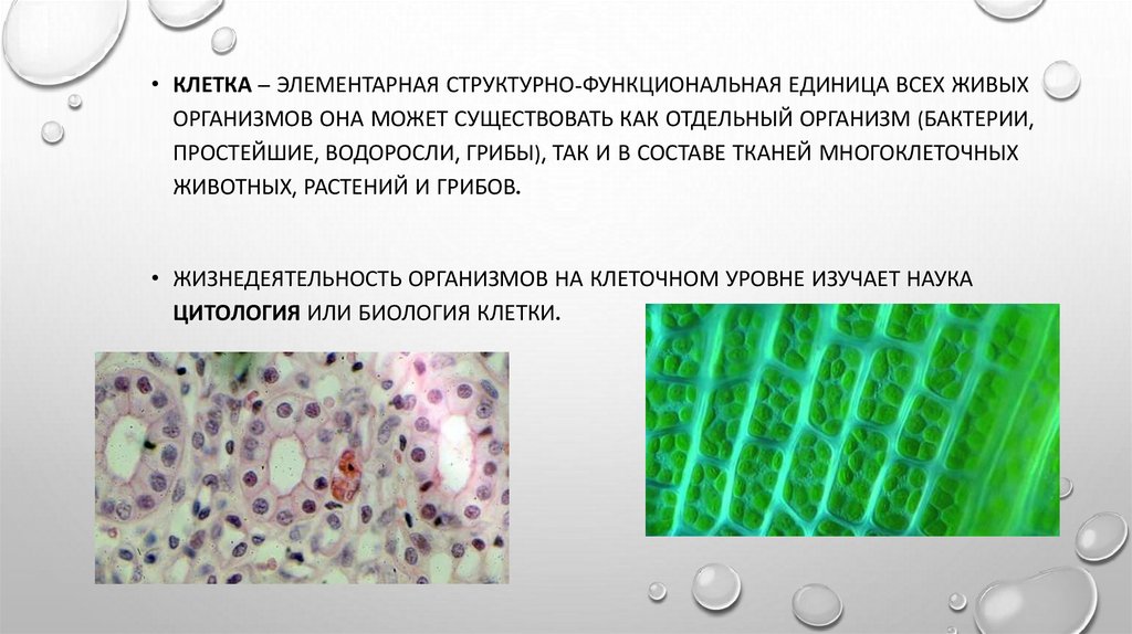 • КЛЕТКА – ЭЛЕМЕНТАРНАЯ СТРУКТУРНО-ФУНКЦИОНАЛЬНАЯ ЕДИНИЦА ВСЕХ ЖИВЫХОРГАНИЗМОВ ОНА МОЖЕТ СУЩЕСТВОВАТЬ КАК ОТДЕЛЬНЫЙ ОРГАНИЗМ (БАКТЕРИИ,