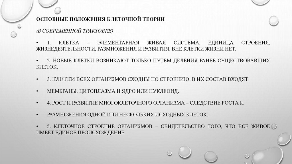 ОСНОВНЫЕ ПОЛОЖЕНИЯ КЛЕТОЧНОЙ ТЕОРИИ(В СОВРЕМЕННОЙ ТРАКТОВКЕ)
