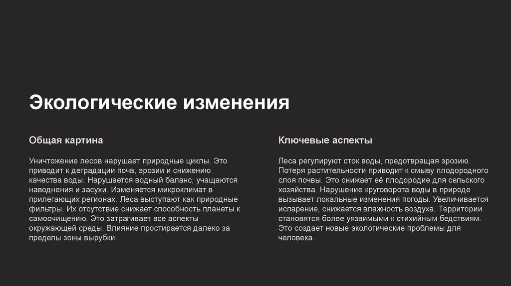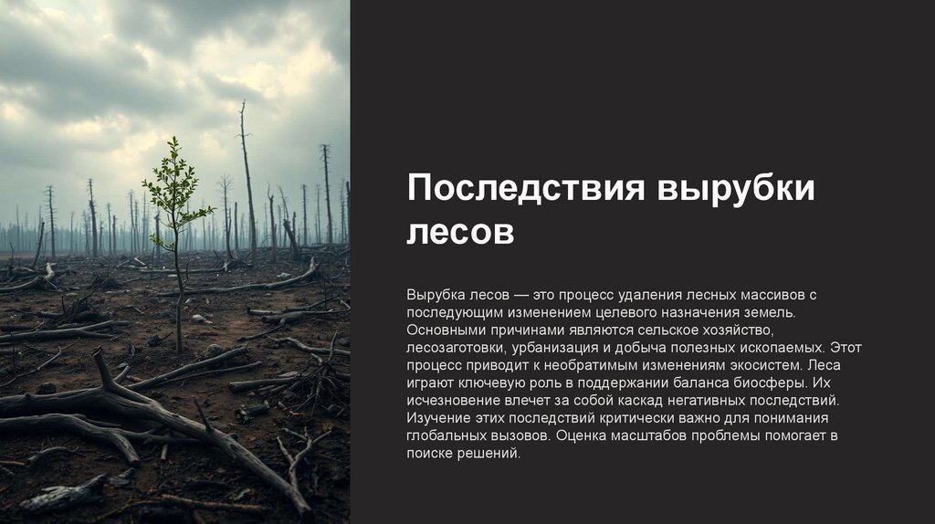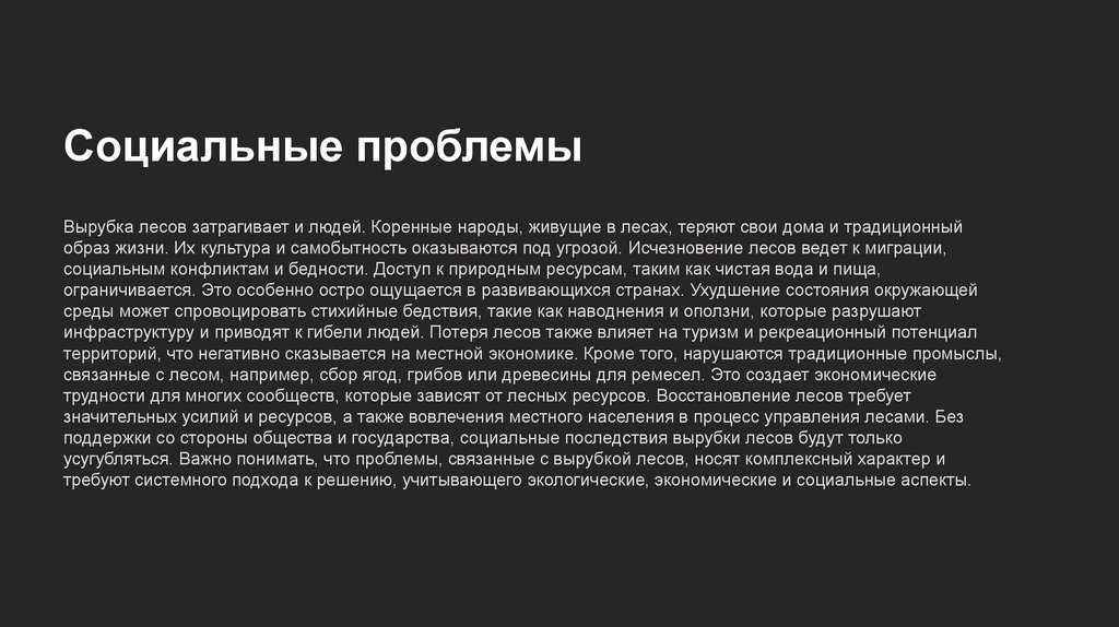 усугубляться. Важно понимать, что проблемы, связанные с вырубкой лесов, носят комплексный характер и