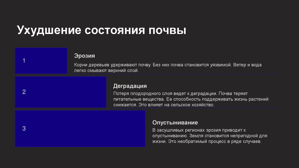 Потеря плодородного слоя ведет к деградации. Почва теряет