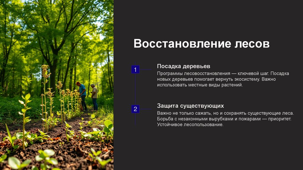 трудности для многих сообществ, которые зависят от лесных ресурсов. Восстановление лесов требует