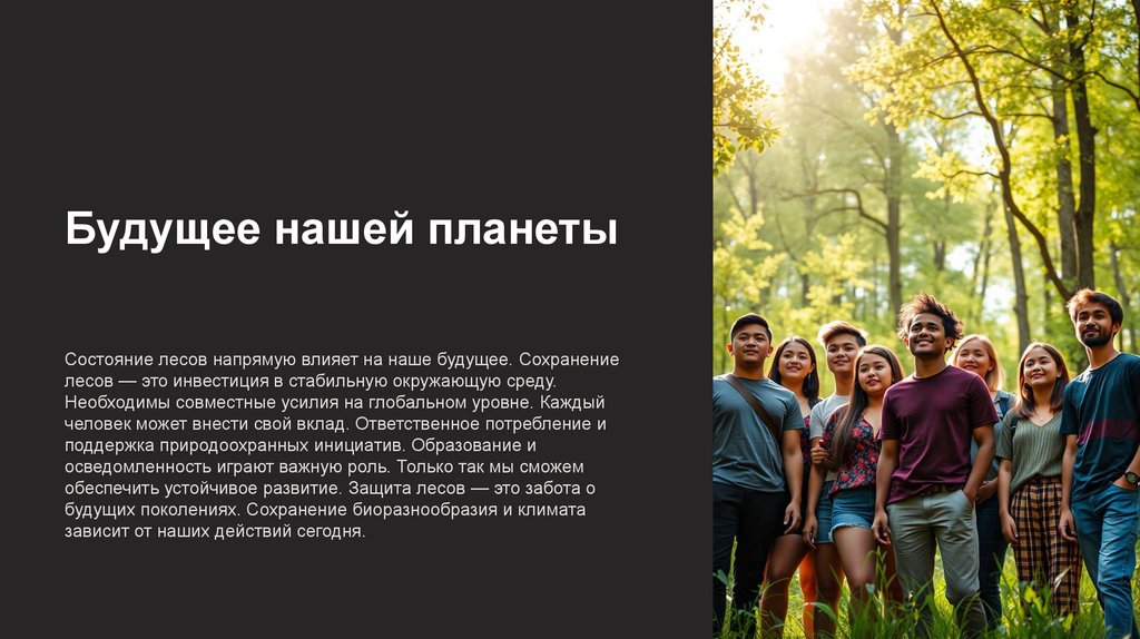 Будущее нашей планетыСостояние лесов напрямую влияет на наше будущее. Сохранение