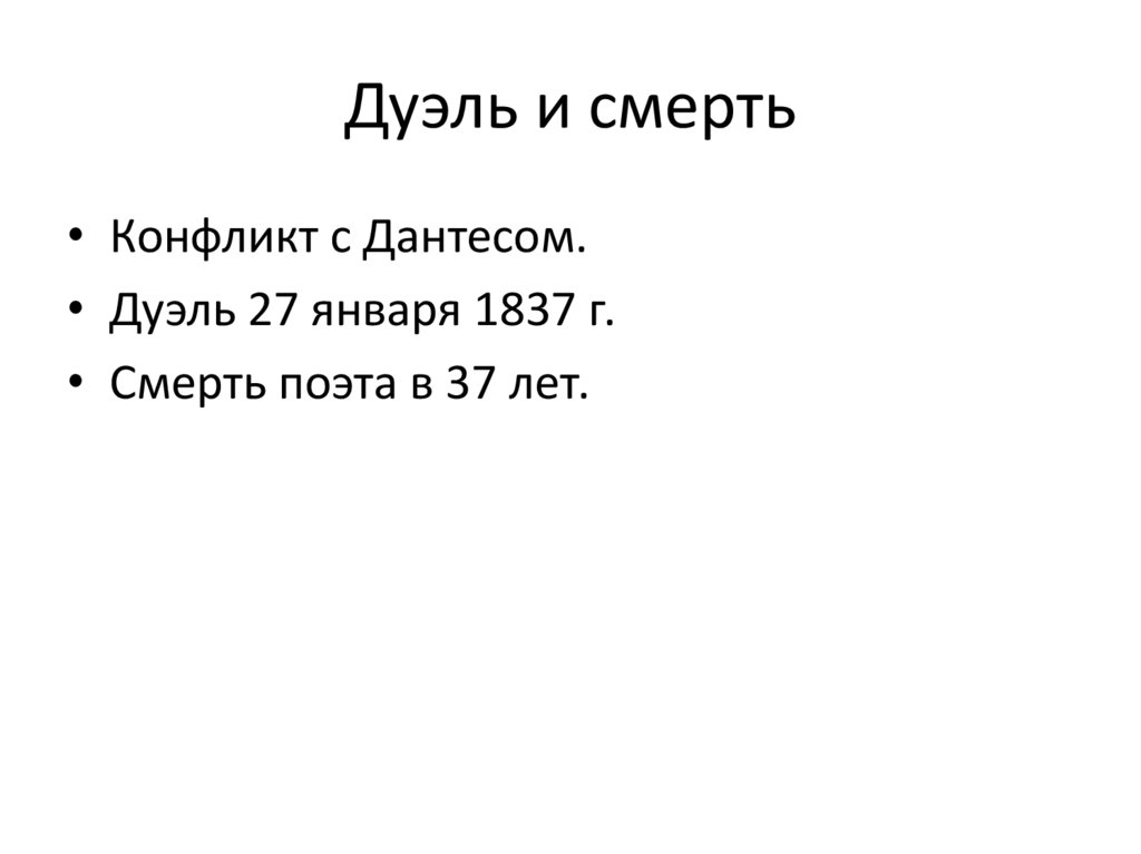 Дуэль и смерть• Конфликт с Дантесом.