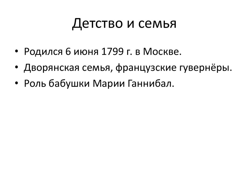 Детство и семья• Родился 6 июня 1799 г. в Москве.