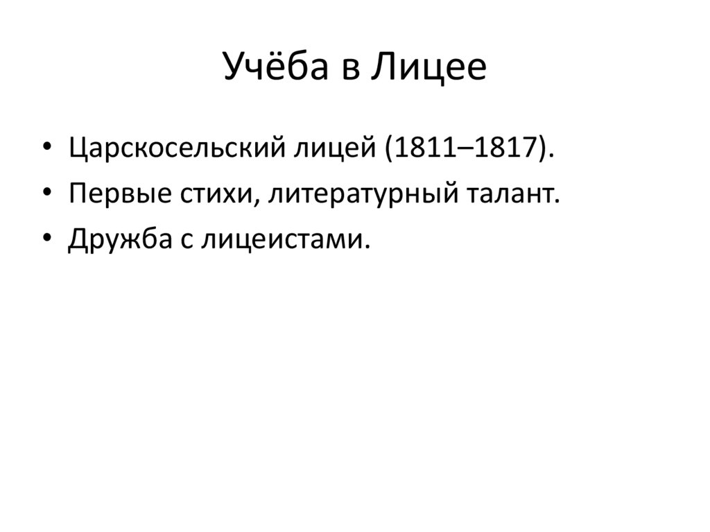Учёба в Лицее• Царскосельский лицей (1811–1817).