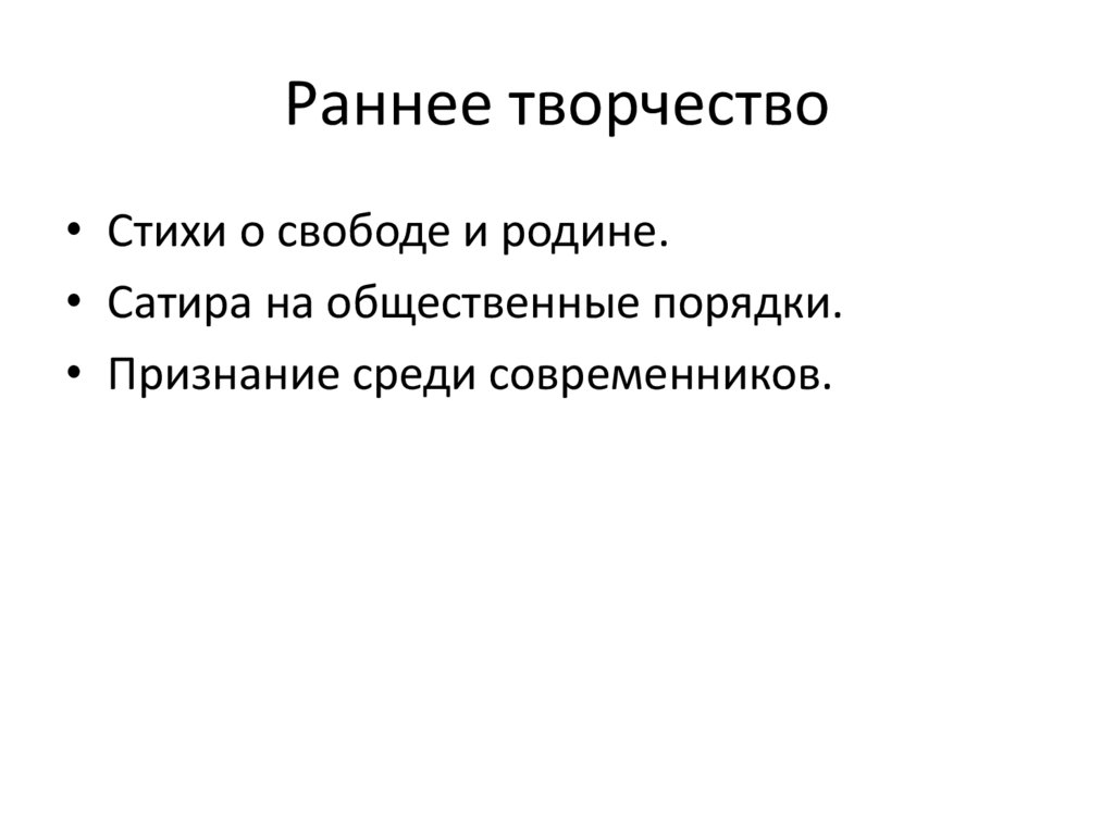 Раннее творчество• Стихи о свободе и родине.