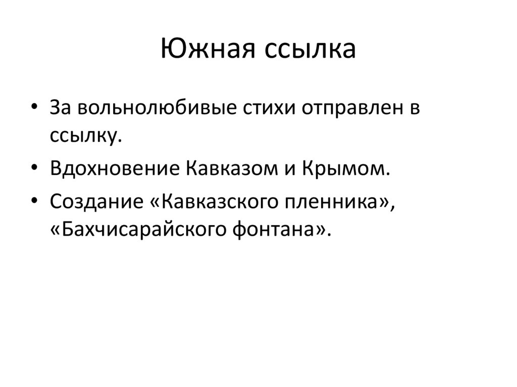 Южная ссылка• За вольнолюбивые стихи отправлен в