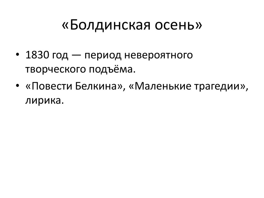 «Болдинская осень»• 1830 год — период невероятного