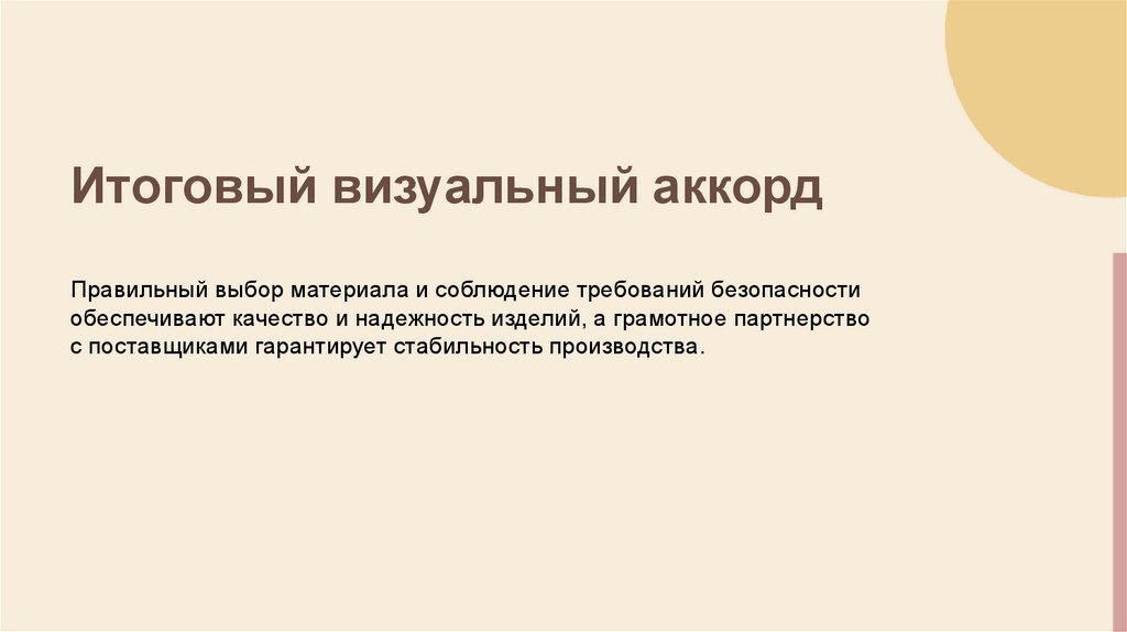Итоговый визуальный аккордПравильный выбор материала и соблюдение требований безопасности