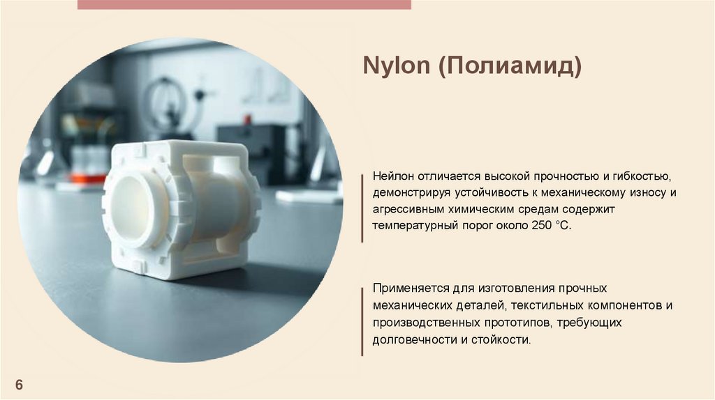 Nylon (Полиамид)Нейлон отличается высокой прочностью и гибкостью,