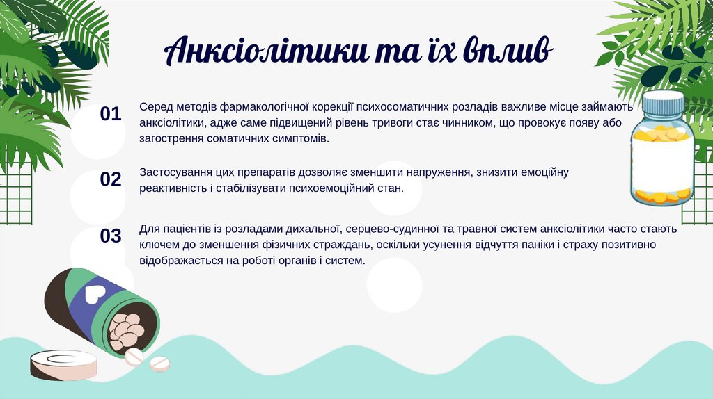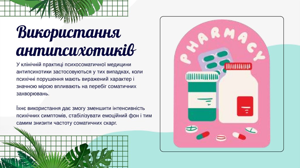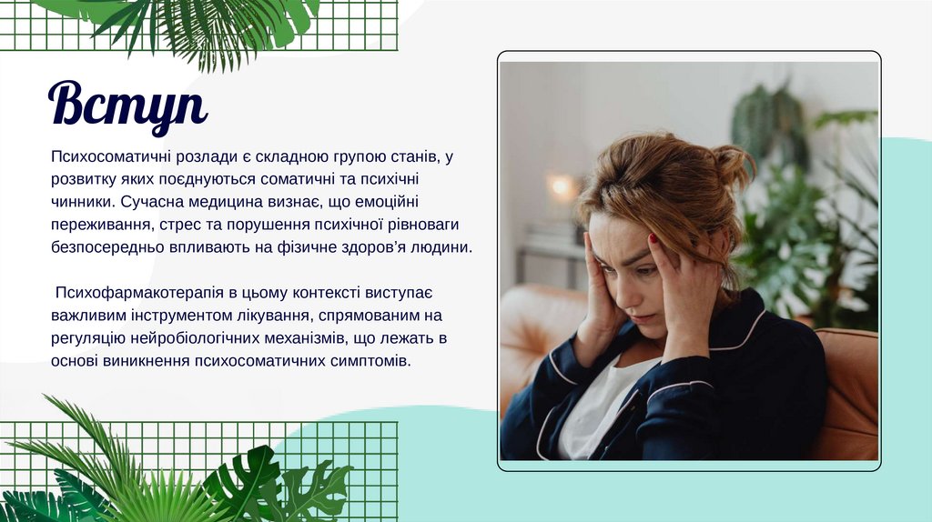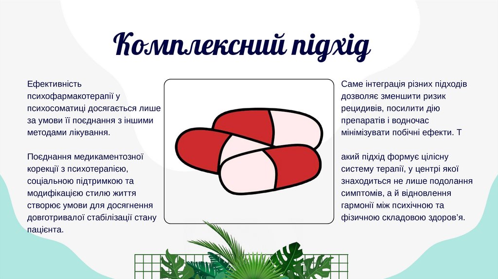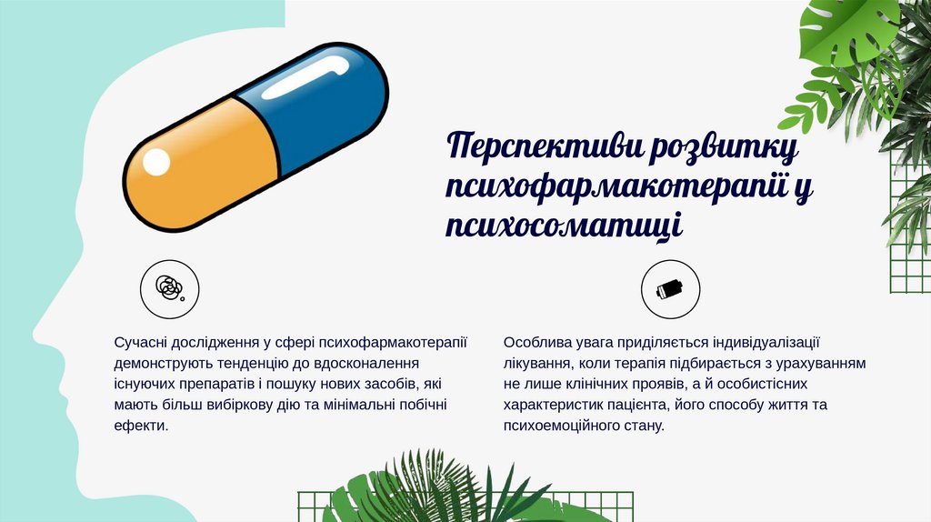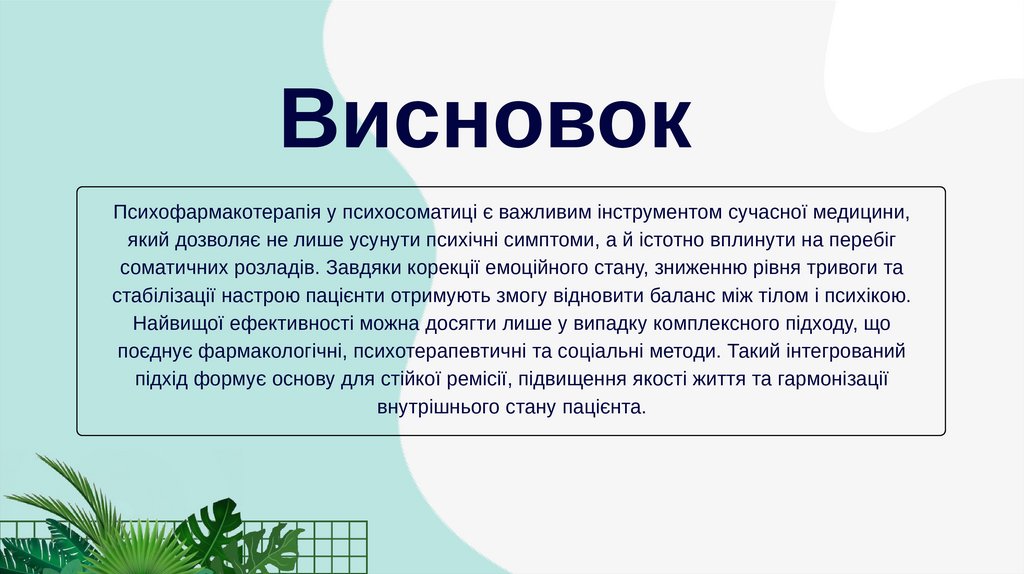 ВисновокПсихофармакотерапія у психосоматиці є важливим інструментом сучасної медицини,