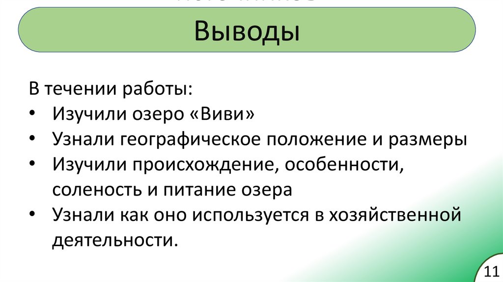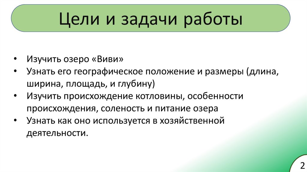 Цели и задачи работы• Изучить озеро «Виви»