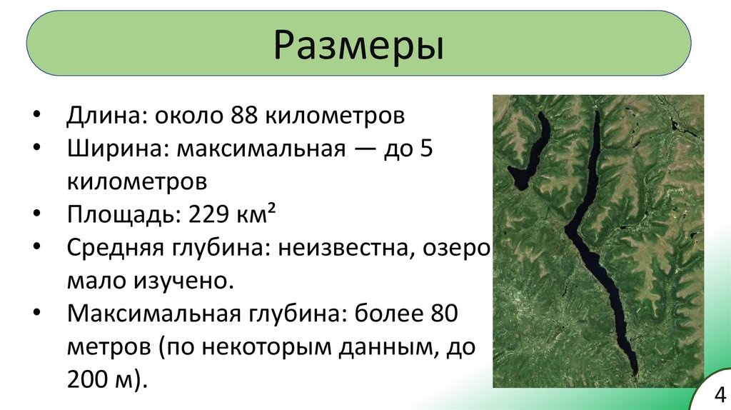 • Средняя глубина: неизвестна, озеро