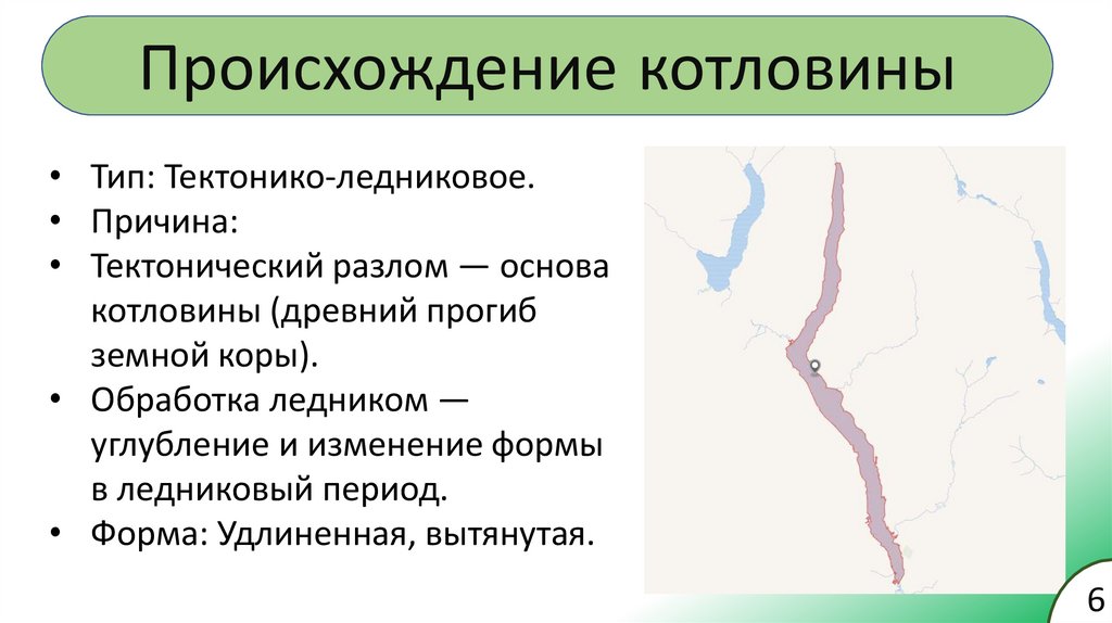 Происхождение котловины• Тип: Тектонико-ледниковое.
