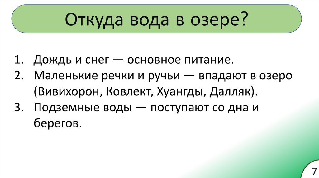 2. Маленькие речки и ручьи — впадают в озеро