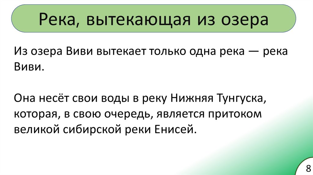 Река, вытекающая из озераИз озера Виви вытекает только одна река — река