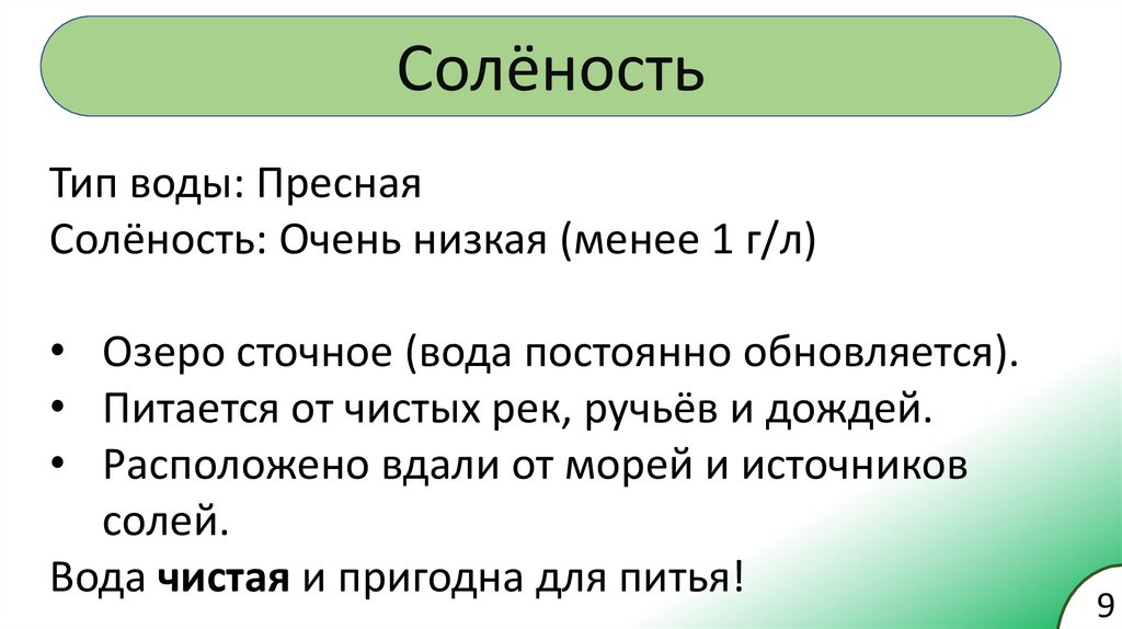 СолёностьТип воды: Пресная