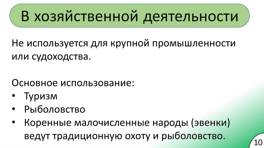 В хозяйственной деятельностиНе используется для крупной промышленности