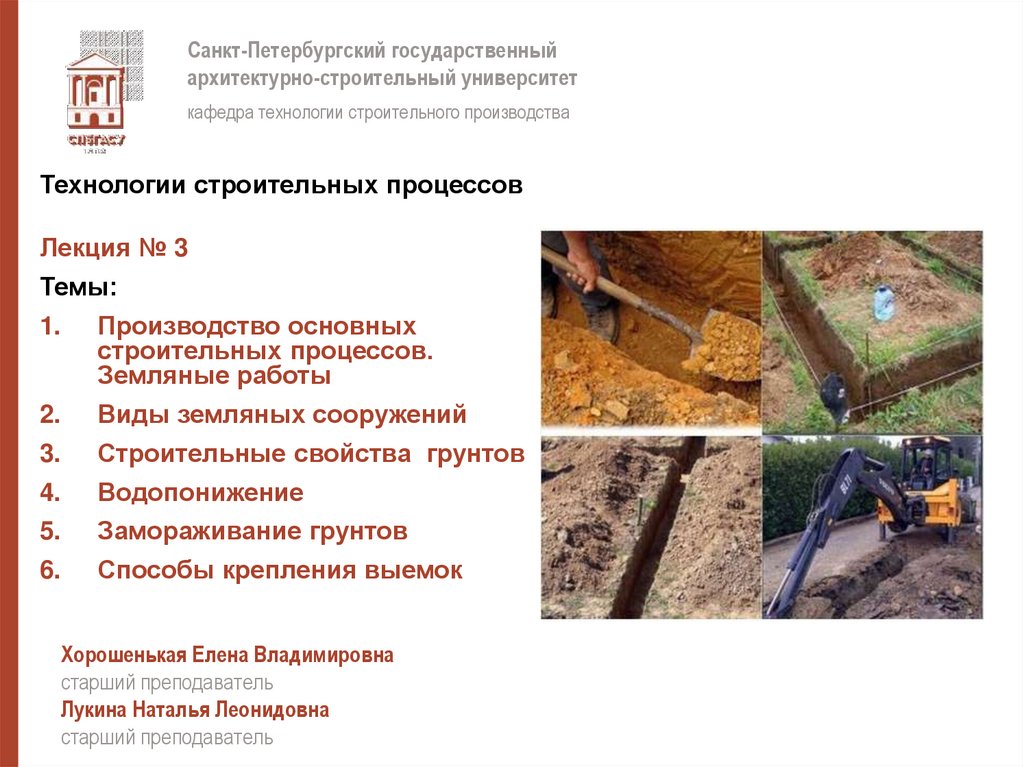 1213. Технология процессов земляных работ. Технологические свойства грунтов