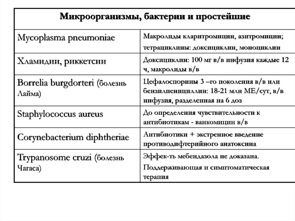 • Антибактериальные препараты, как правило,существенной роли в лечении миокардитов