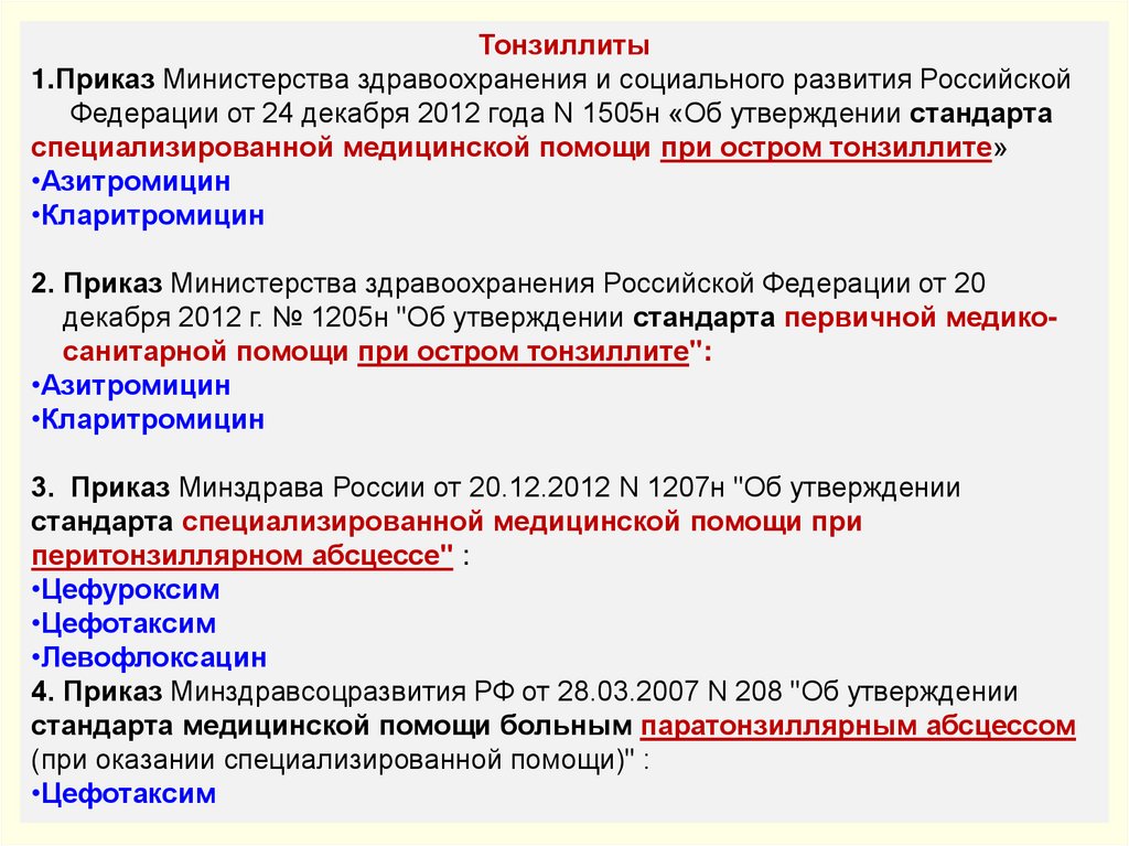 Тонзиллиты1.Приказ Министерства здравоохранения и социального развития Российской