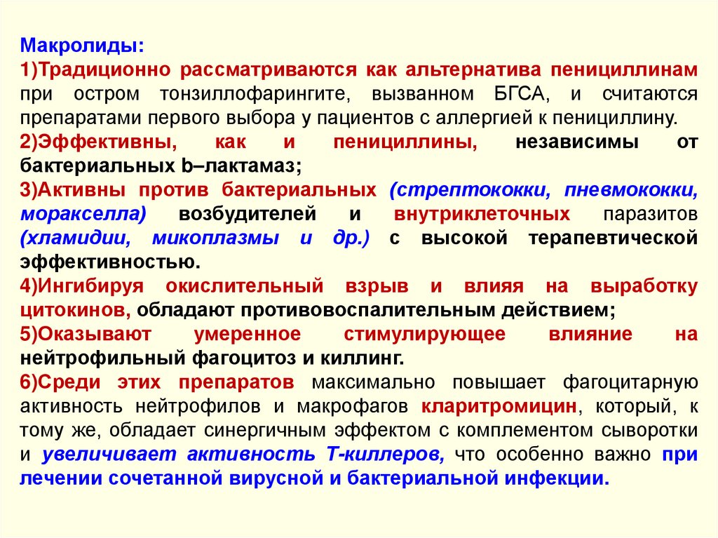 Макролиды:1)Традиционно рассматриваются как альтернатива пенициллинам