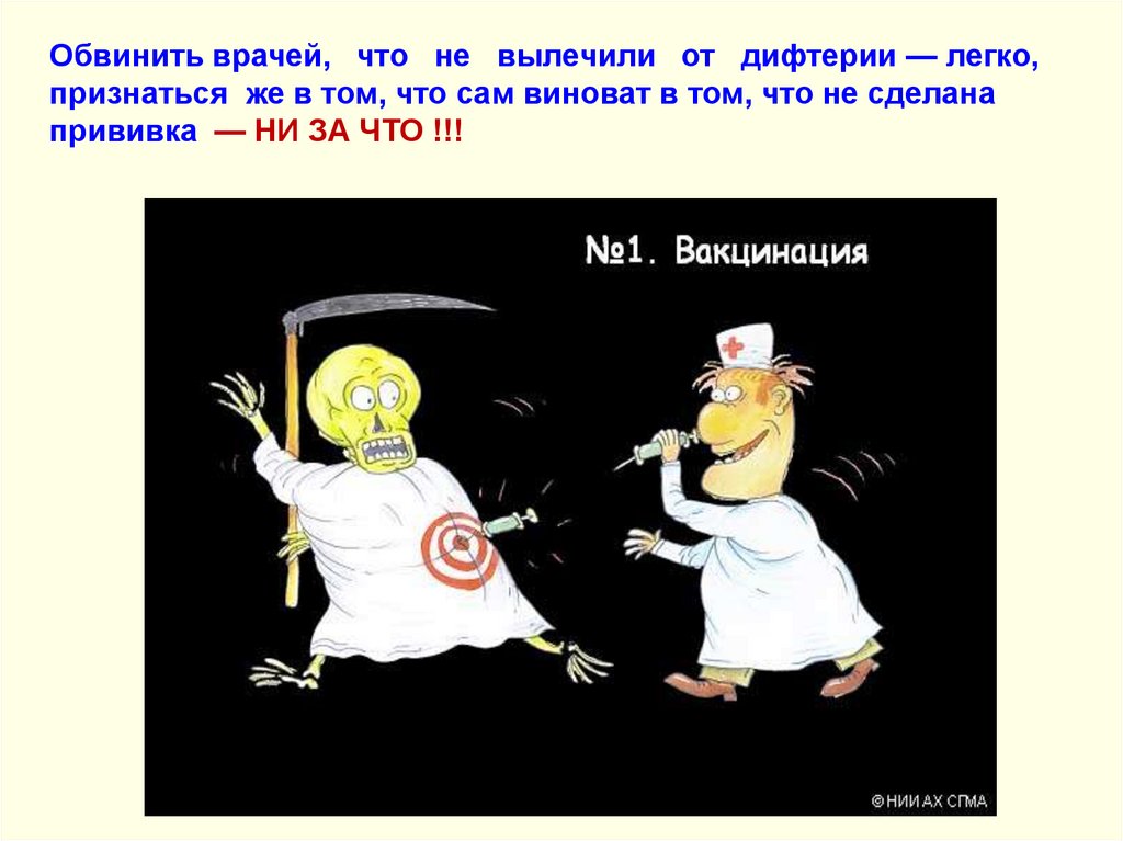 Обвинить врачей, что не вылечили от дифтерии — легко,признаться же в том, что сам виноват в том, что не сделана