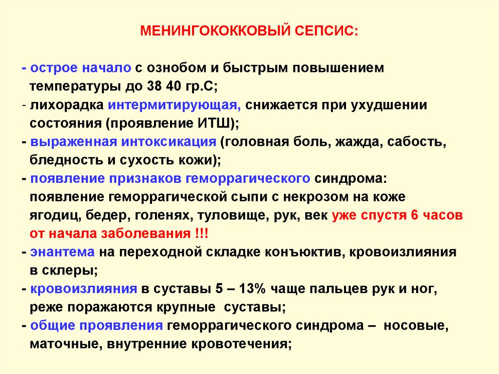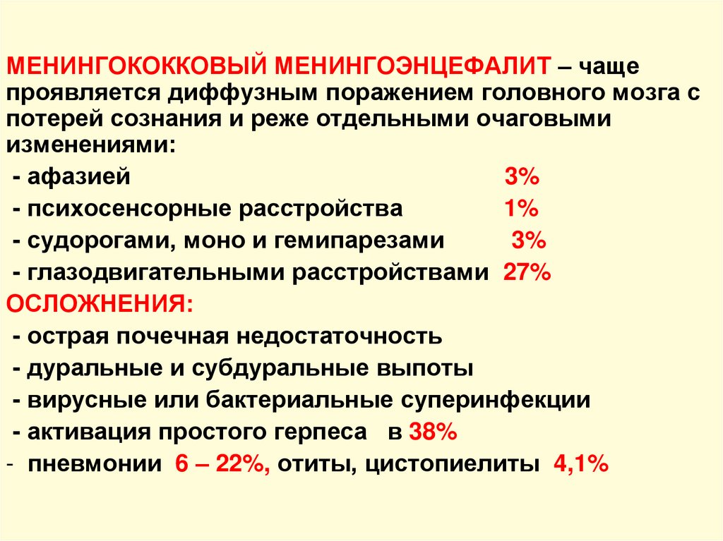- менингеальные симптомы;