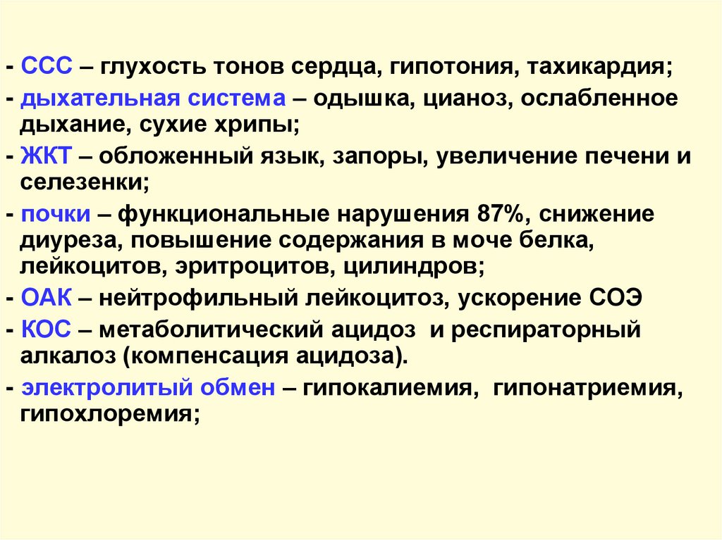 - Коррекция КОС, ВЭО, белкового обмена